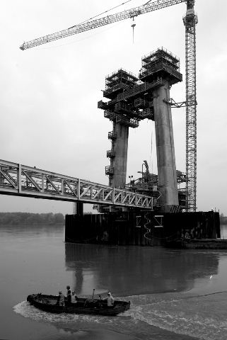 Il ponte sul Po della linea ferroviaria ad alta velocità Milano Bologna in costruzione.