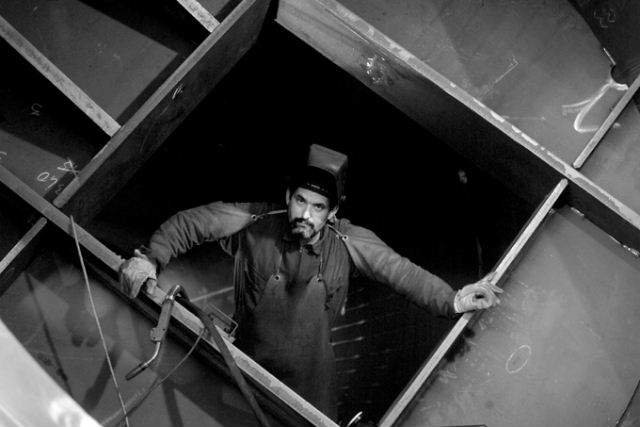Assemblaggio dei componenti della struttura di copertura dello Stadio Olimpico di Atene.